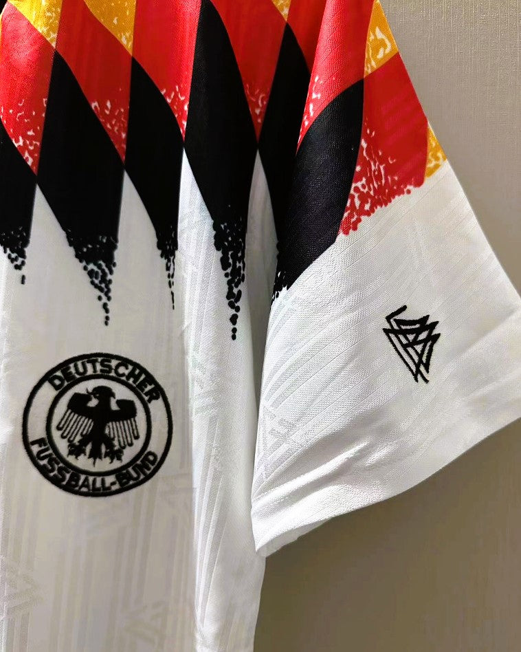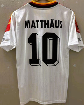 Rivivi l'epopea del grande calcio con la maglia della Germania della stagione 1994-95 personalizzata con il numero 10 di LOTHAR MATTHÄUS. Questo gioiello assoluto è una delle maglie più iconiche della storia, un monumento alla gloria e alla determinazione della squadra teutonica guidata dal suo leggendario capitano tedesco