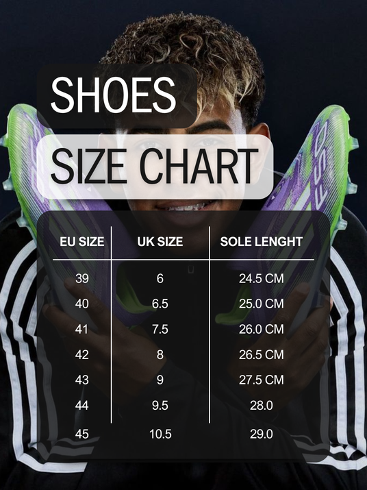 Find your perfect fit with our updated size chart. Comfort, performance, and style—made to match your stride.