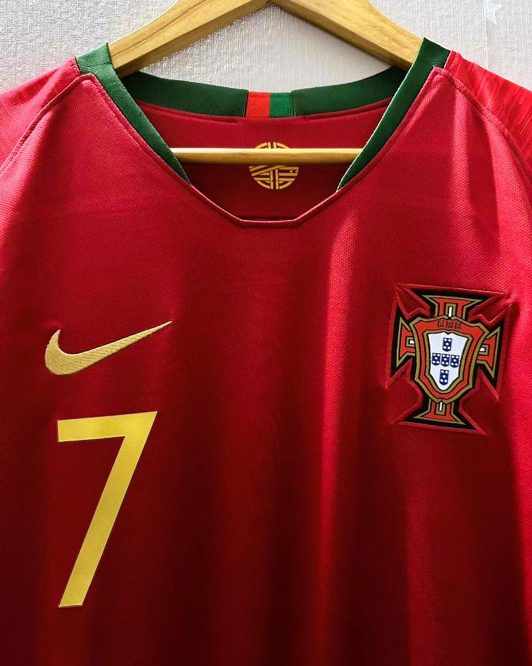 Rivivi la storia e la gloria del Portogallo con la maglia 2018-2019 indossata con il numero 7 da CRISTIANO RONALDO. Questo autentico capolavoro è la testimonianza del fenomenale portoghese, con le patch di Russia '18 su entrambe le maniche a elevare ulteriormente la bellezza di questa divisa