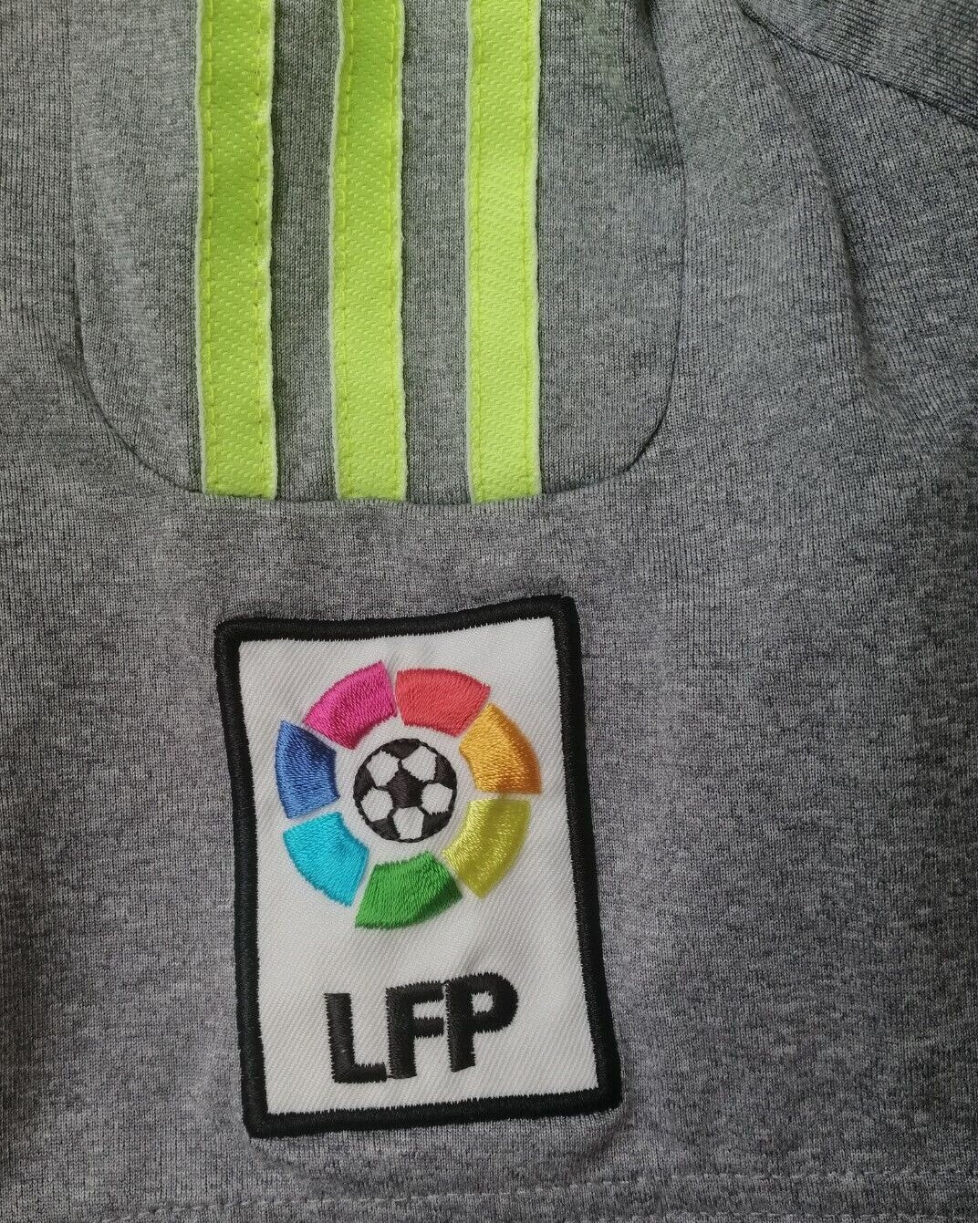 La maglia del Real Madrid per la stagione 2015-16, indossata con il numero 7 da CRISTIANO RONALDO, è realizzata da Adidas in un'accattivante combinazione di colori. Di colore grigio e giallo con la patch della Liga, è ravvivata da nome e numero bianchi che creano un contrasto di colori audace e accattivante evidenziando ulteriormente la grandezza del fenomenale CR7