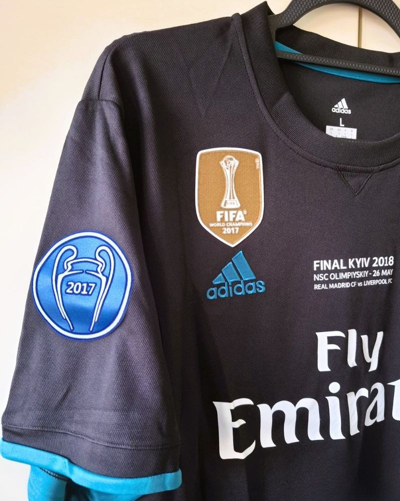 Rivivi la stagione 2017-18 del Real Madrid con la maglia numero 7 di CRISTIANO RONALDO. Arricchita dalle varie patch che celebrano il prestigio e la forza del club, è l'ultima indossata da CR7 con i blancos a terminare un percorso straordinario che si chiude con l'ennesima Champions League conquistata